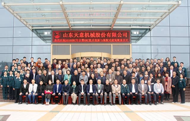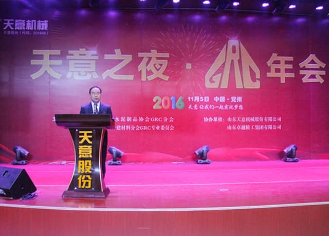 為加快GRC技術(shù)創(chuàng)新,積極適應(yīng)經(jīng)濟新常態(tài),2016年11月5日,2016 GRC年會暨裝配式建筑發(fā)展研討會在山東圣德酒店盛大召開,本次會議由GRC協(xié)會及專業(yè)委員會主辦,山東天意機械股份有限公司協(xié)辦。